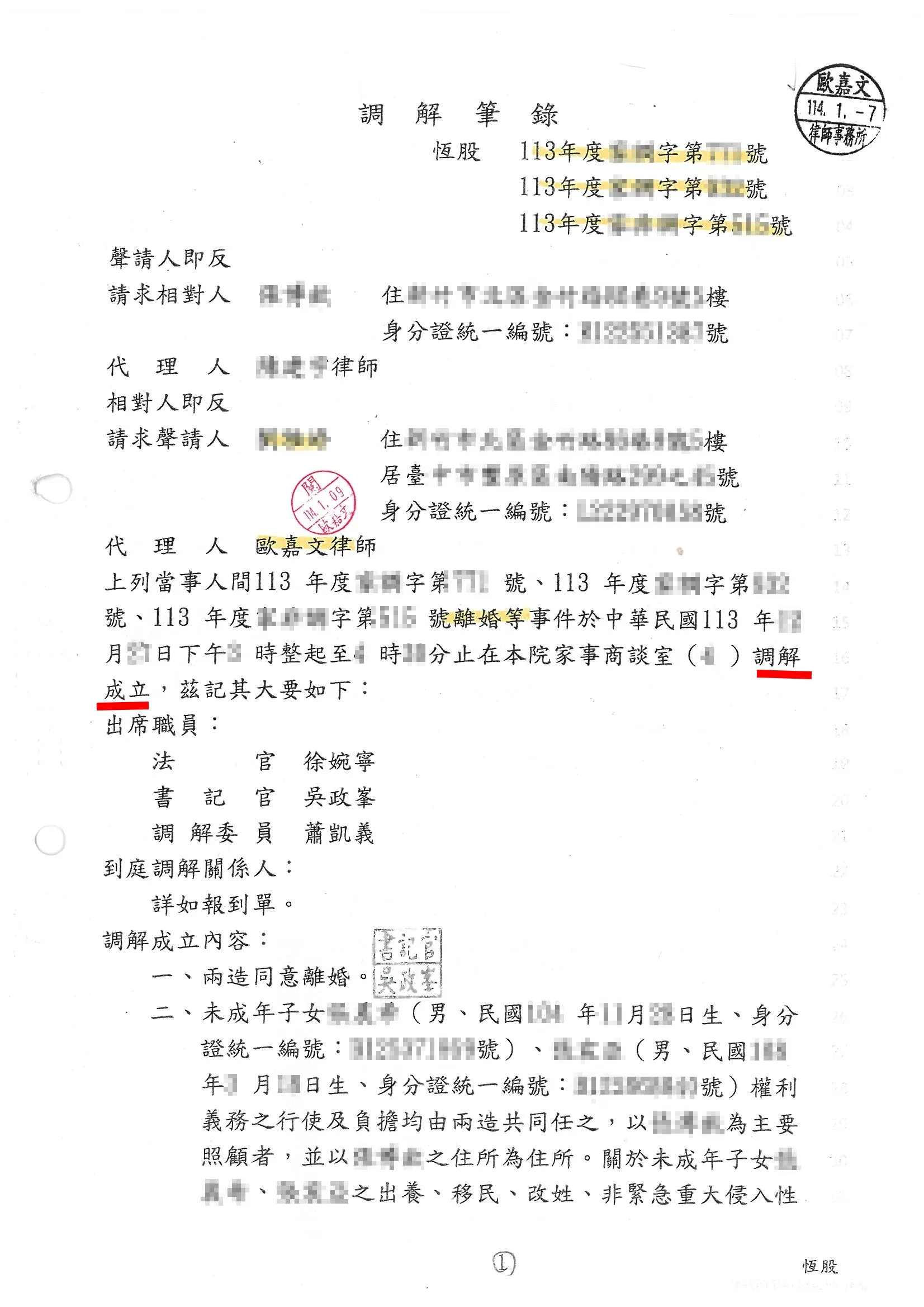 離婚案件-勝訴|台中家事訴訟律師|豐原家事訴訟律師